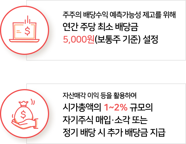 주주의 배당수익 예측가능성 제고를 위해 연간 주당 최소 배당금 5,000원(보통주 기준) 설정